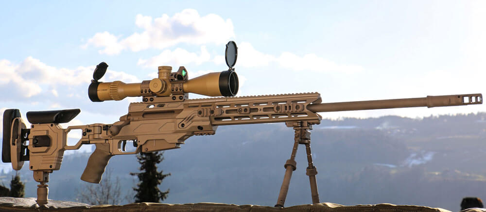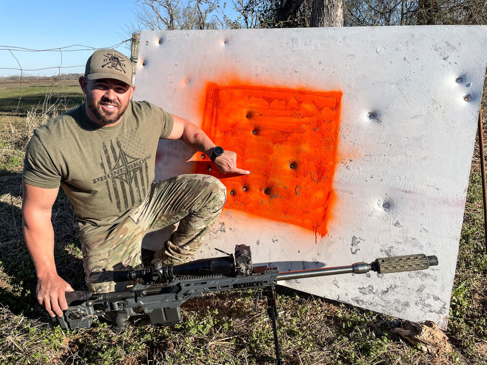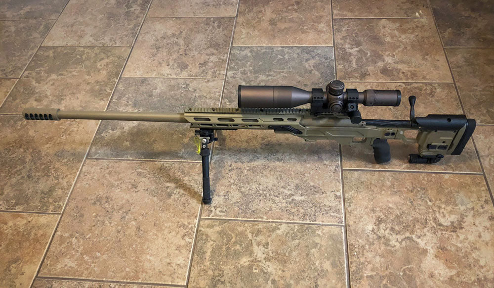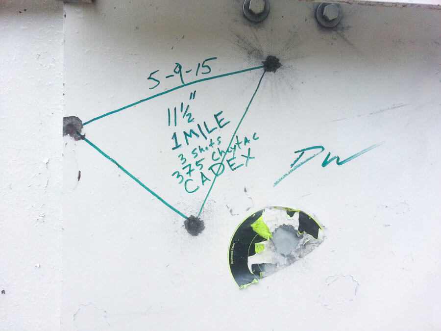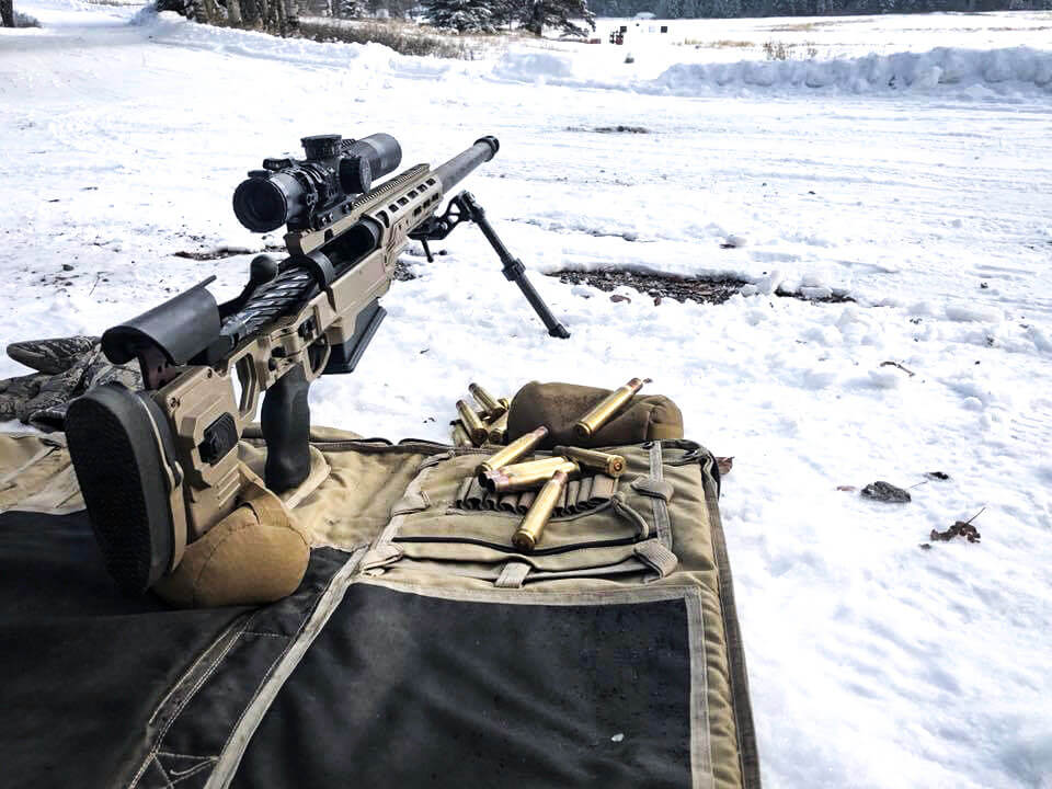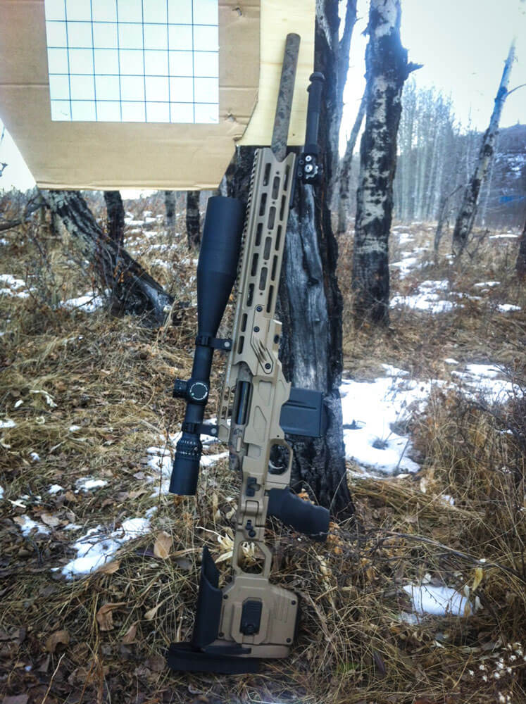 CDX-50 Tremor action in a Dual Strike chassis chambered in 416 Barrett Match. Impact at 5280 yards!!