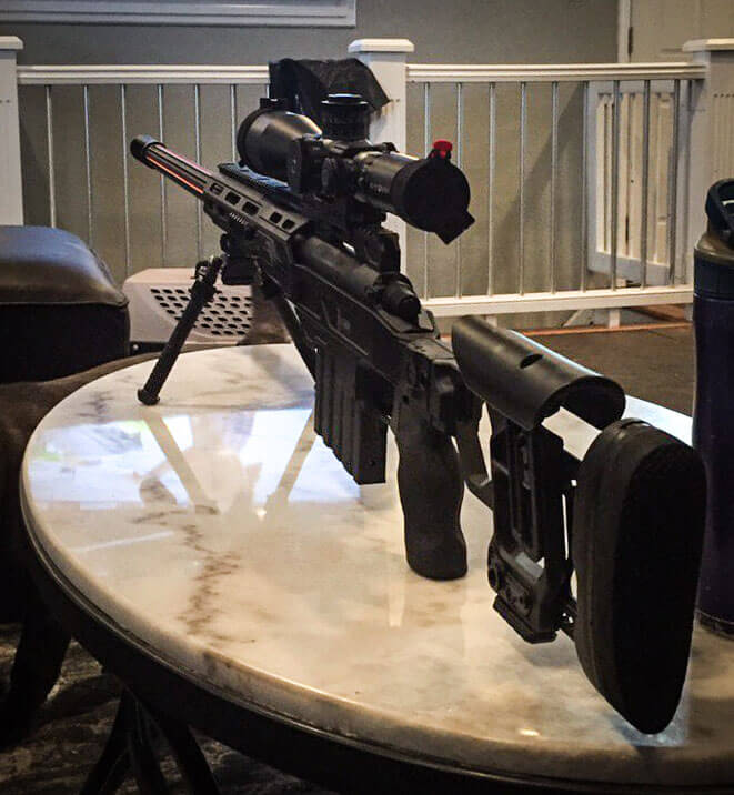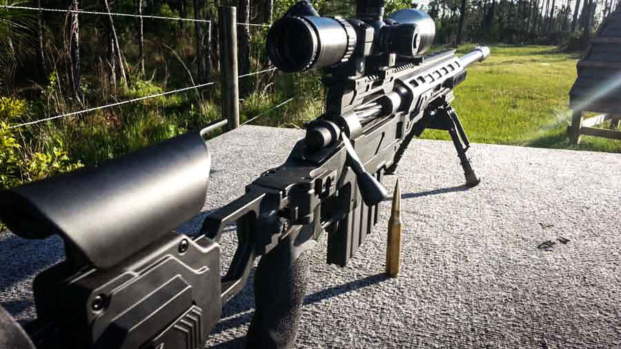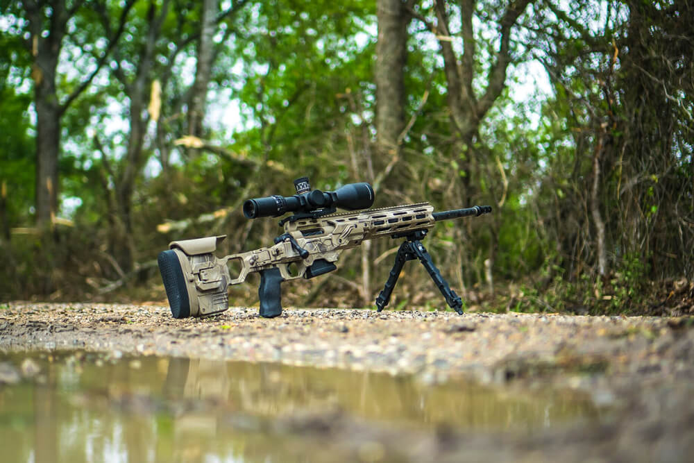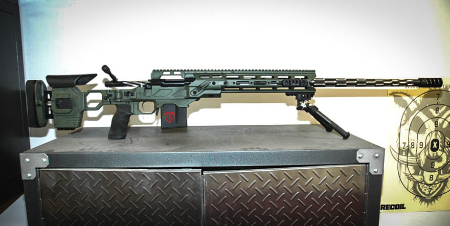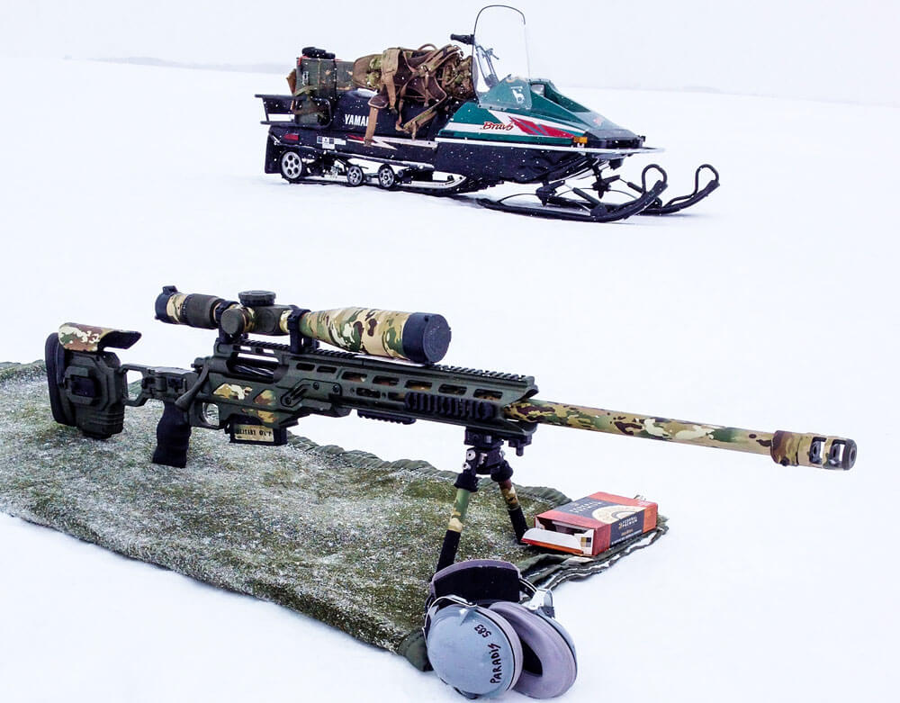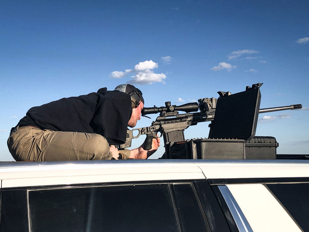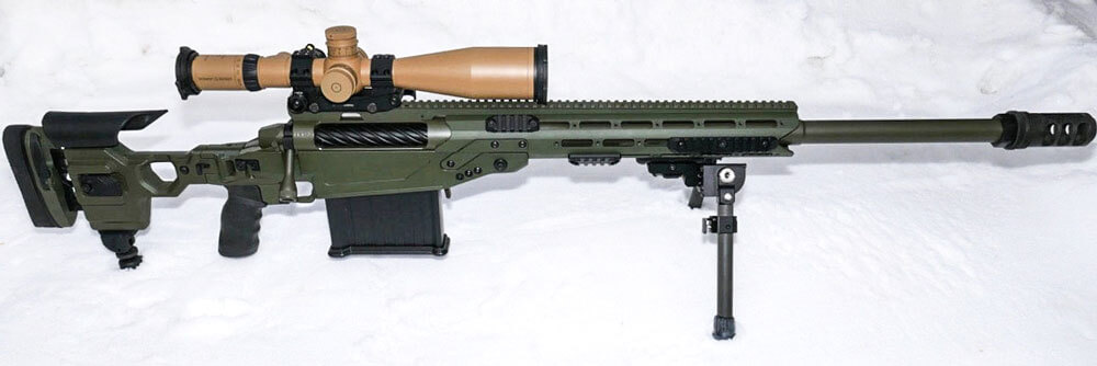 CDX-50 Tremor action in a Dual Strike chassis chambered in 416 Barrett Match. Impact at 5280 yards!!