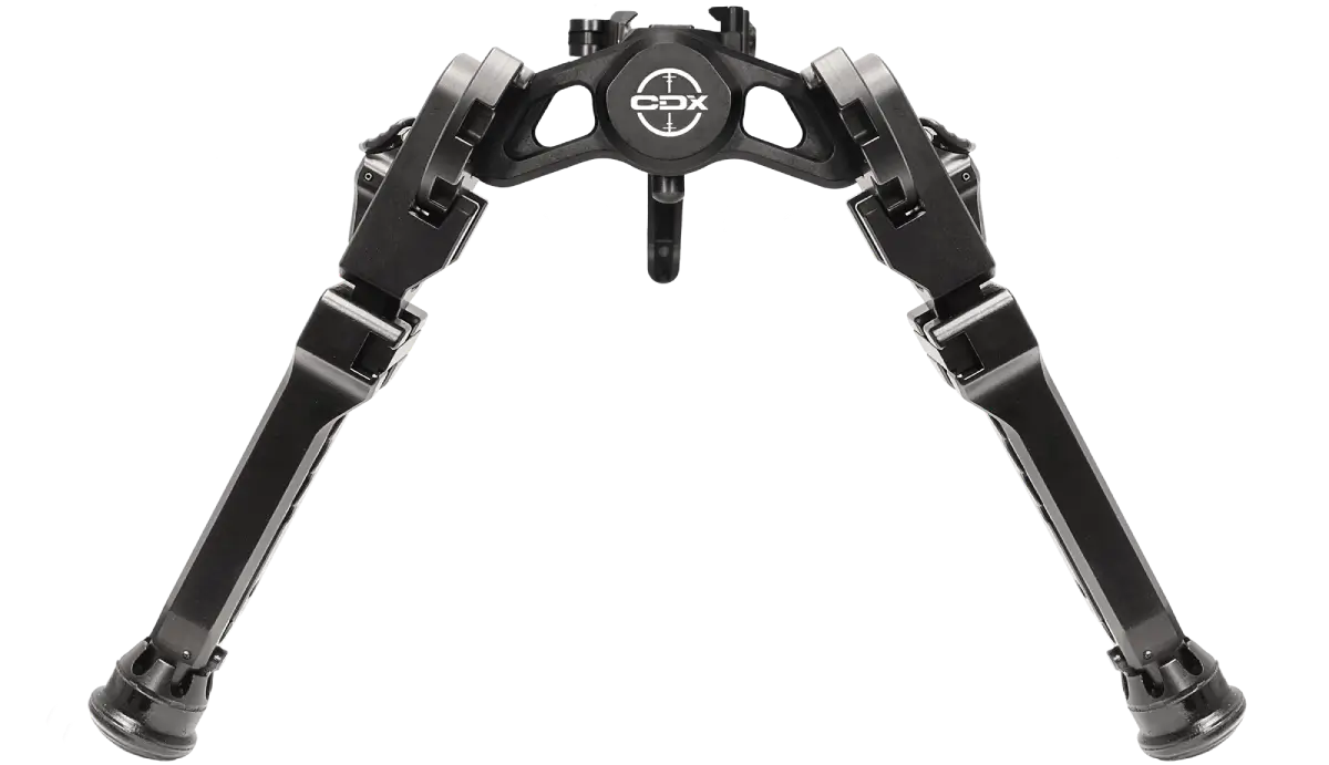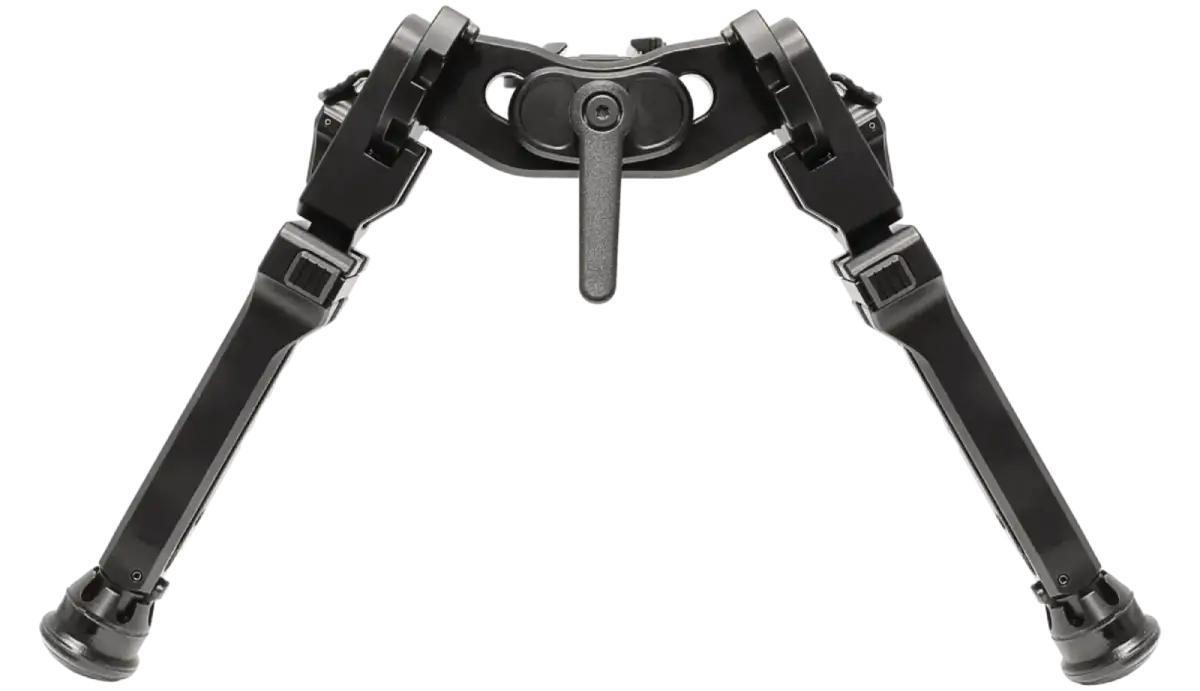 permet au bipied de s’incliner autour d’un point de pivot central plutôt que de glisser dessous. Il est principalement fabriqué en aluminium 6061-T6 et en polymères renforcés de fibres, ce qui le rend à la fois léger et robuste.
