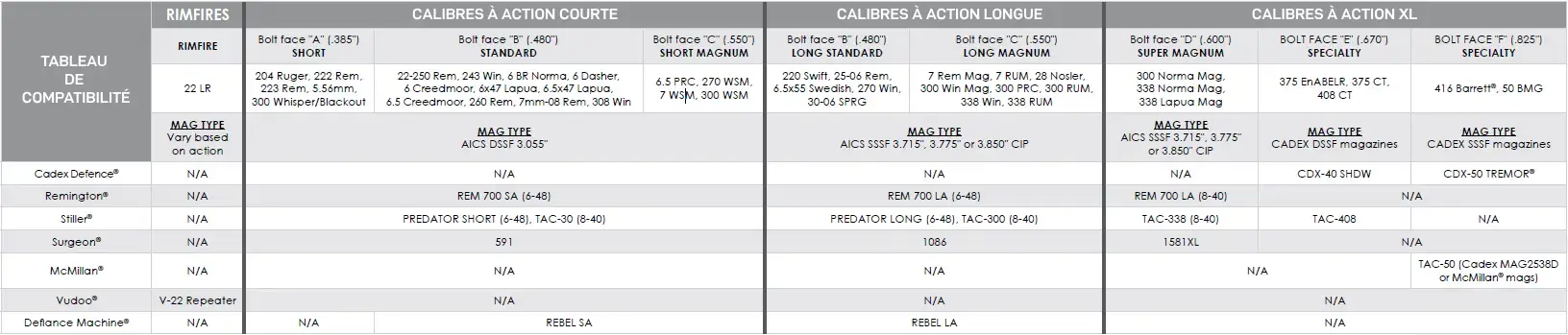 * CheyTac est une marque déposée de CheyTac USA Inc. Cadex Defence n'est pas affilié, approuvé ou sponsorisé par CheyTac USA.
