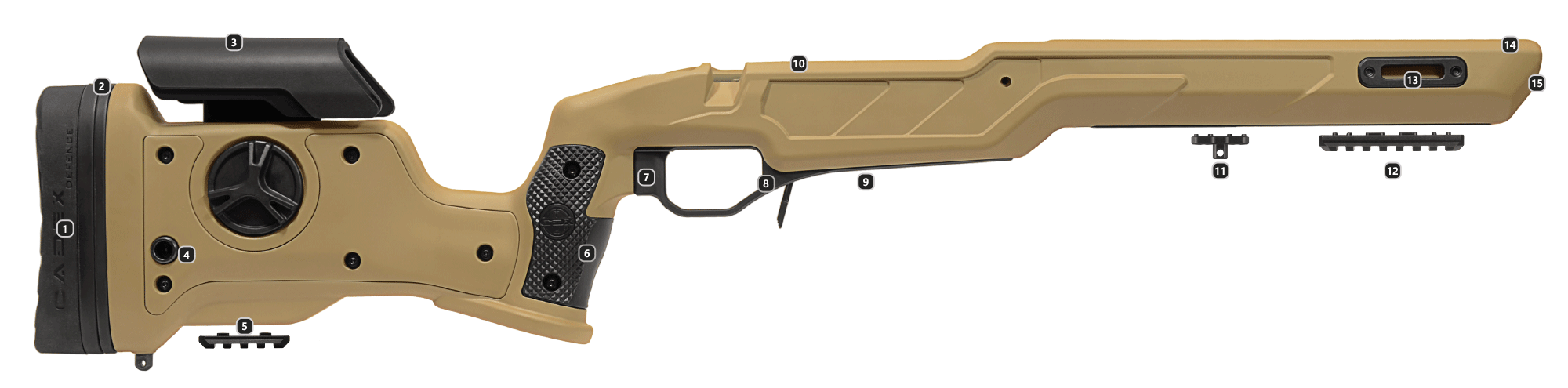 - Fits Cadex CDX-R7, CDX-SS SEVEN S.T.A.R.S., Rem 700, custom clones and Tikka T3(x) / T3(x) CTR.