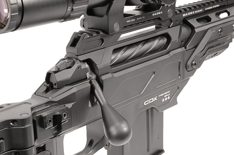 Cadex CDX-30/300/33 actions were designed from the ground up to stand up to the most rigorous demands of Military and Special forces from around the world. These actions are CNC machined and wire EDM cut raceways from solid stainless steel creating an extremely accurate action setting it apart from the competition. The Bolt has been designed for faster lock time and uses a Cadex-designed heavy-duty extractor. They also feature a 3-lug 60 deg bolt through for fast smooth operation. Available with 20 MOA rails that use 4 8×40 screws and are machined in recoil lug to prevent any movement. The CDX-30/300/33 line of actions is a proprietary Cadex footprint.