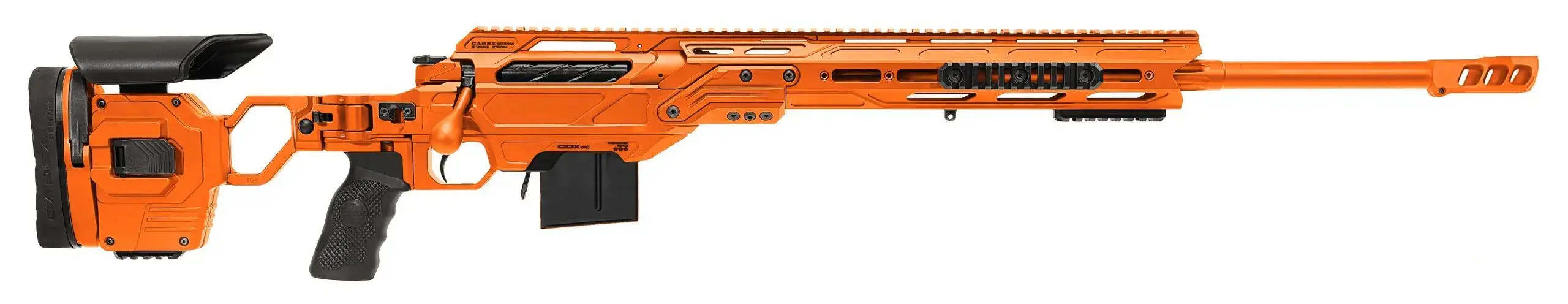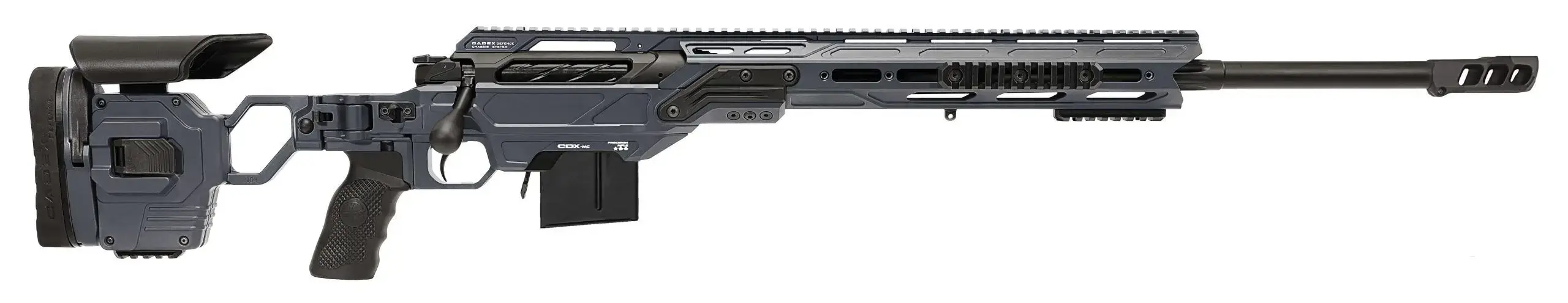 In order for Cadex to offer the best extreme long range sub-MOA precision rifle, we selected Bartlein Barrels. Teamed with our Cadex designed 1.238” heavy barrel straight taper with barrel band and threaded muzzle for slip on suppressor or muzzle brake. All Cadex barrels are 5R Mil-Spec Match Grade Single point-cut rifling with an optimized twist rate.