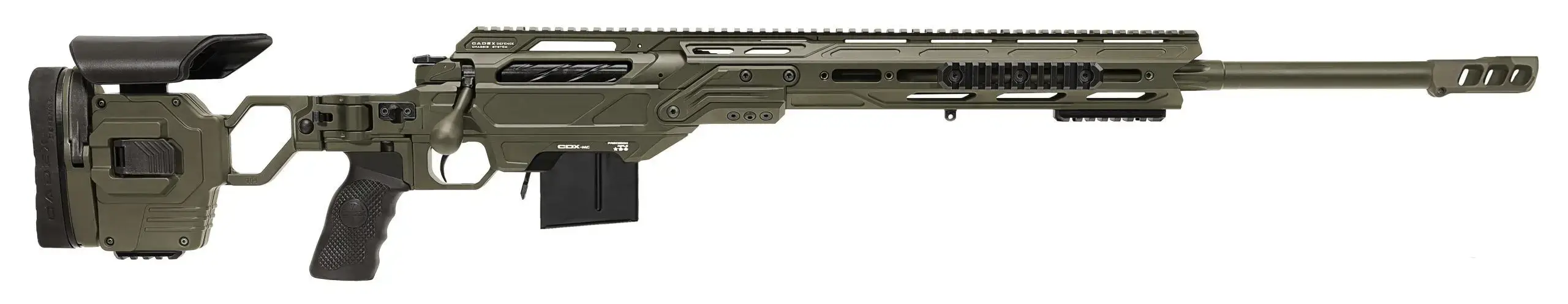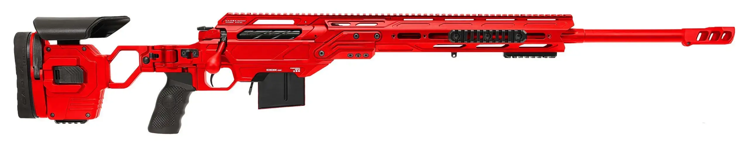 The CDX-MC KRAKEN® is a multi-caliber rifle using an innovative patented barrel change system. This multi-caliber system features the lowest shift of point of impact between takedown and reassembly of the same barrel on the market. Cadex CDX-MC uses a traditional barrel-to-action threading system while incorporating a special tool designed to unscrew and torque its barrel from the breech side. A single screw secures the chassis detachable base for fast conversion between short and long action calibers. Maintaining the same P.O.I. is critical at extreme ranges and the Kraken® surpasses any other multi-caliber system on the market.