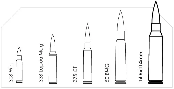 - Bolt face type G (1.082"): 12.7x114mm UA, 14.5x114mm