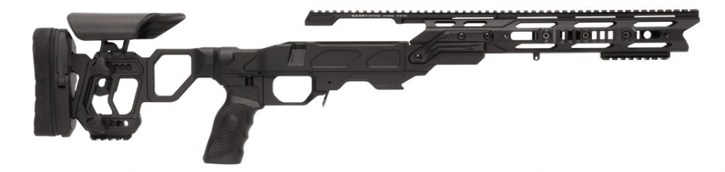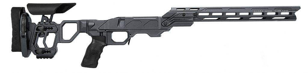 The Cadex Strike Nuke Evo micro-chassis system is designed for shooters looking for traditional stock ergonomics while benefiting from the advantages of a chassis system. Gen2 improved design with M-LOK technology and high density fiberglass reinforced polymer.