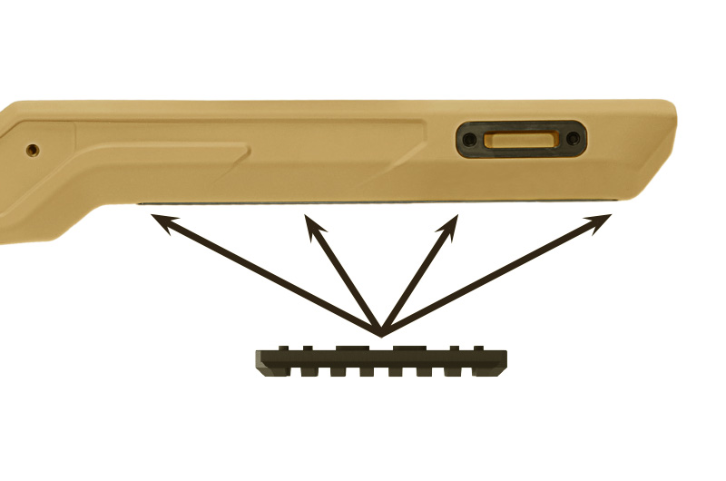 Optional M-LOK bipod/sling adaptor.
