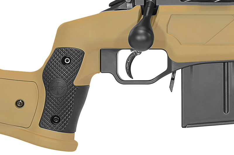 - Oversized trigger guard and magazine release for easy manipulation with gloves.