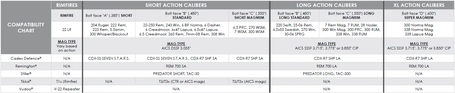 For any Defiance Machine® or Rem 700 Custom Clones, contact Cadex to validate compatibility prior to order.