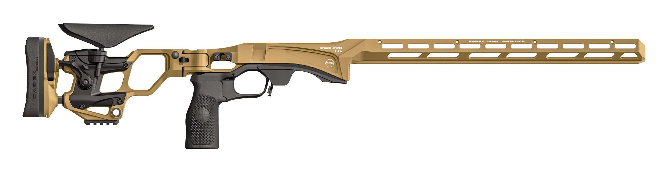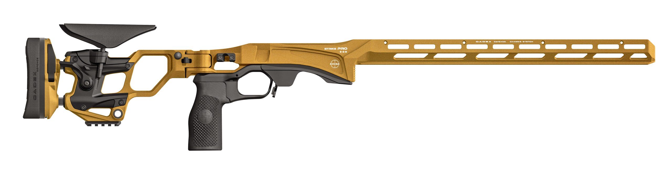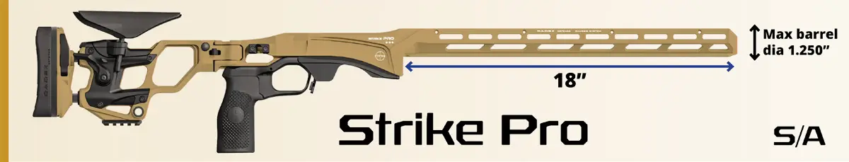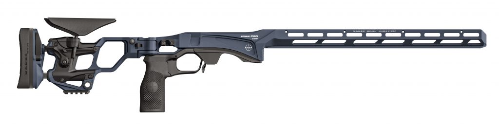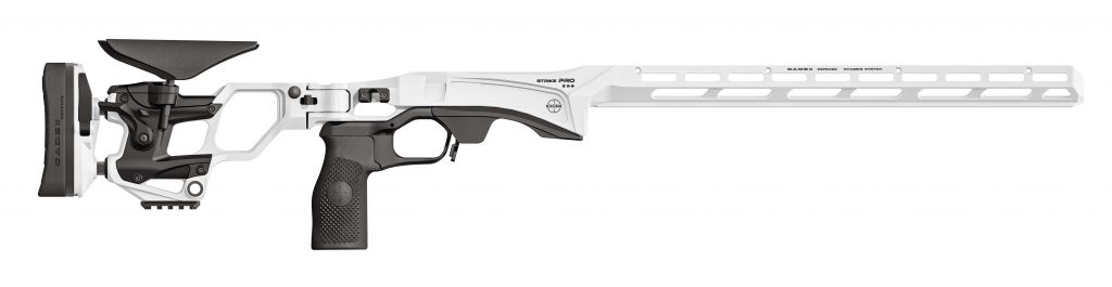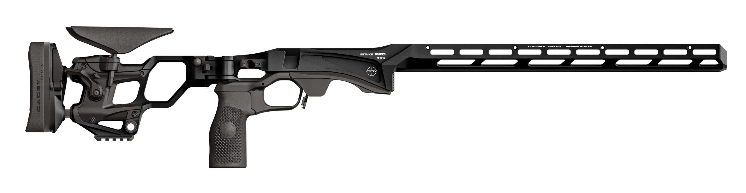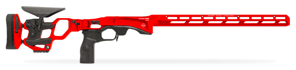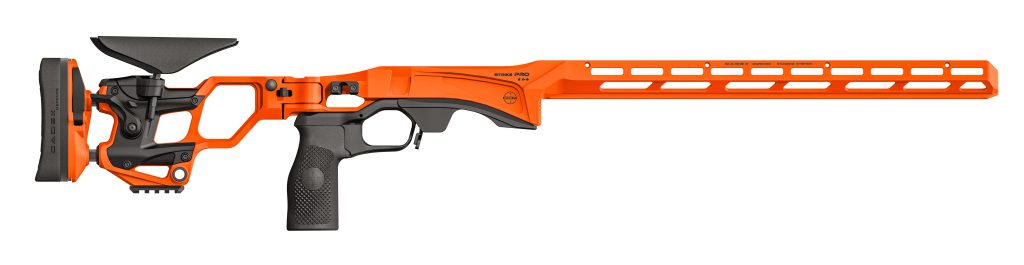 The Strike Pro is the ultimate chassis for professional PRS shooters as well as for amateurs competing at regional matches. The Strike Pro combines all features needed for positional shooting games where every second matters. This competition chassis features a 17″ long built-in Arca Elite System (AES) rail, 10 M-LOK mounting slots at 3, 6 and 9 o’clock, a barricade stop, our PRO folding tool-free adjustable rear stock, a multi-position adjustable trigger guard, tunable height ambidextrous extended magazine latch and rubberized vertical grip. Popular optional items such as M-LOK weights, full length night vision bridge and PRO handguard can be purchased separately.
