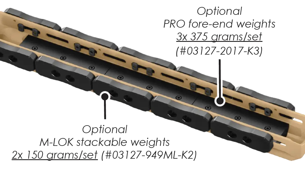 Optional buttstock bracket for M-LOK weights (#03127-2076-K1).