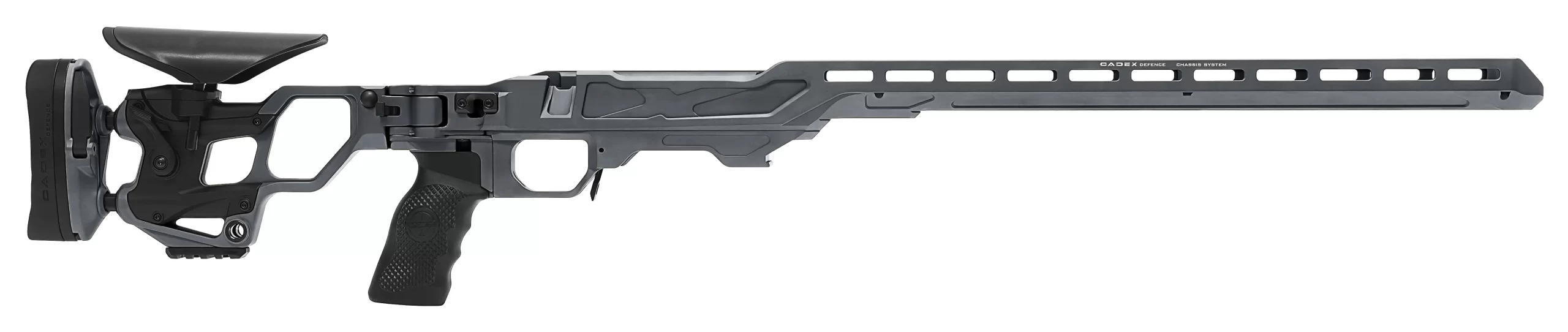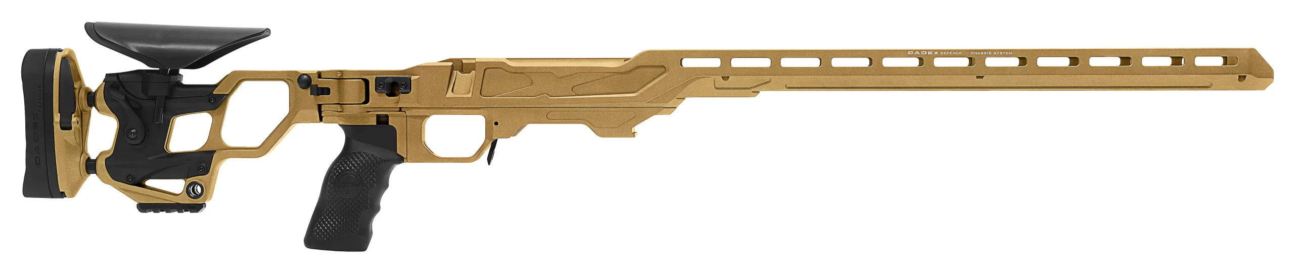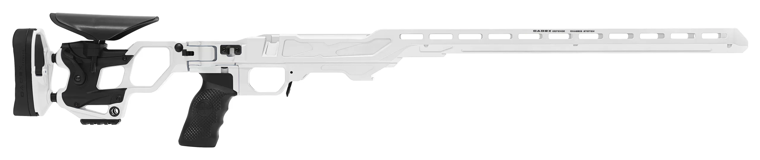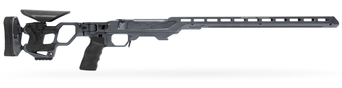 The STRIKE XS is the latest evolution of our long-range chassis systems. It incorporates most features requested by positional shooting competitors without sacrificing any features an operator needs during field operations. This chassis is built from a one-piece lower receiver and fore-end tube carved out of a solid aluminum billet. The fore-end tube features 11 side and 9 bottom M-LOK slots, was lengthened to 15.5″ and was reinforced at critical areas making it our most rigid chassis yet. An optional extra-long NVD bridge is available for a perfect alignment of thermal imaging, night vision devices, Nightforce® prism or “ballistic periscopes” such as the Charlie Tarac®. This chassis is also equipped with our PRO tool-free fully adjustable and foldable buttstock. If you are looking for a chassis capable of doing all types of shooting, such as prone, tripod or even building roof top, the STRIKE XS will fulfill your needs.