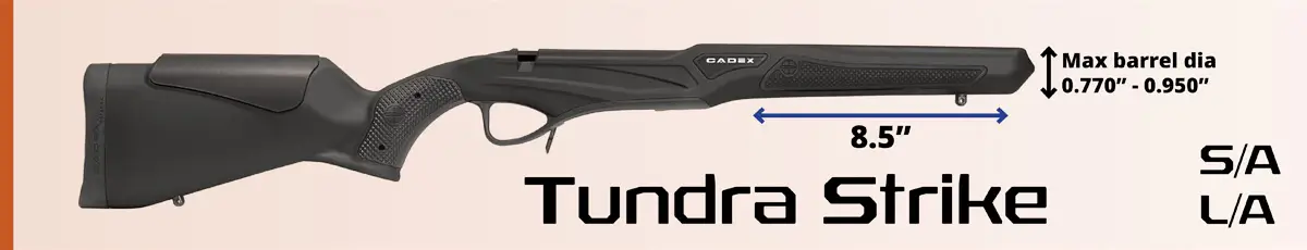 The Tundra Strike rifle stock is designed with back country hunters in mind. Unlike other manufacturers out there aiming at the absolute lightest materials available, Cadex oriented this rifle stock towards a perfect balance between weight reduction, rigidity and no compromise on stability.