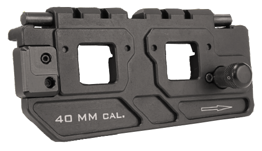 The quick-detach bracket is a mounting interface for the SOLO and KOLOS which provides for “no tool” mounting on both the M2 12.7mm (.50 cal) machine gun and the 40mm GMG (AGL).