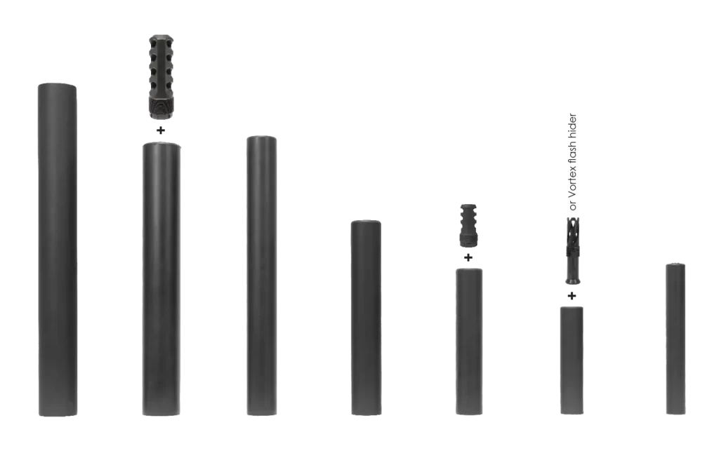 | CARBINE | 6426-A001 | Carbine Suppressor 5.56mm (NSN#: 1005-20-009-1396) | 5.56/223 cal. | Stainless Steel | Screw-on | Vortex or Cadex flash hider | 6426-K001 |