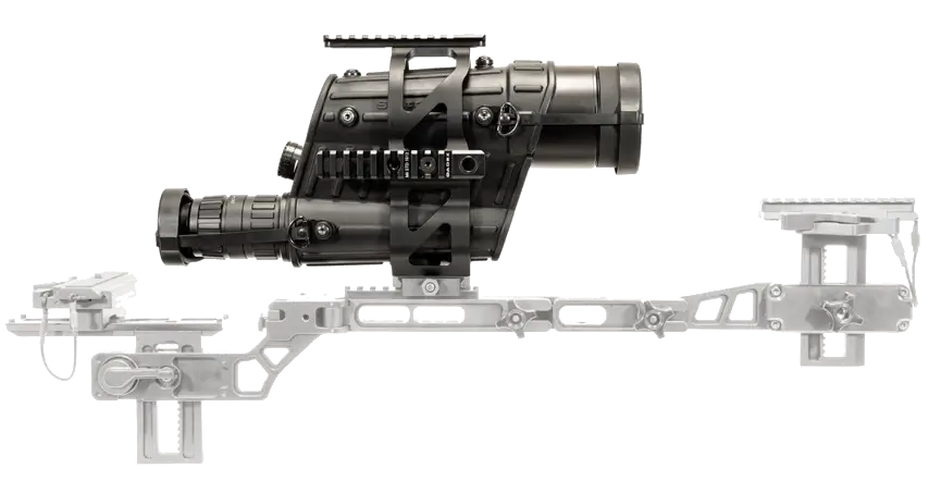 - Allows a perfect alignment for the camera, spotting scope and night vision or thermal imaging