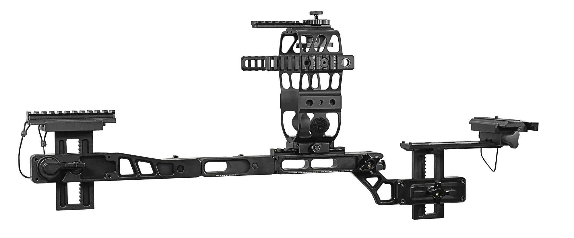 Our unique spotting scope cradle mount ensures that the spotting scope is kept parallel with the chassis and other mounted accessories. It also allows the scope to float within the inverter as it is the scope’s only point of attachment. The 6061-T6 aluminum cage on the scope inverter is lightweight. It is also equipped with Picatinny rails for a broad range of parallel accessory mounting options.