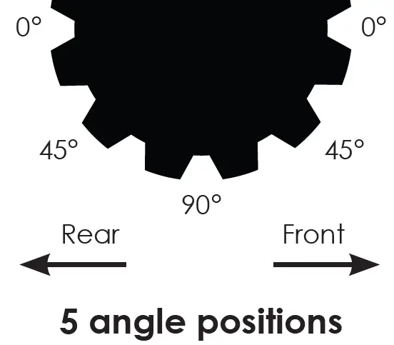 Cant angle +/- 15° (30° total) Pan angle +/- 15° (30° total) - Folds/deploy forward, rearward 45° or standard 90°.