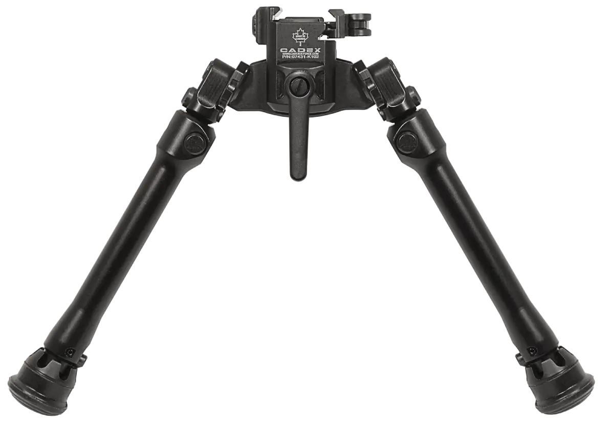 The Falcon Lite bipods utilize a small head design, allowing for a more compact bipod better suited for competitive PRS shooting. It offers the same great canting capability as the bigger Falcon models, in a lighter weight package (only 400-450 grams), without any compromise on its rigidity. It also adds the panning feature, a quick-detach (QD) Picatinny mount, a tensioning lever and 9-position telescopic aluminum tube legs. These bipods have a very wide footprint spread and some of the tightest machining tolerances on the market, making them the most stable lightweight bipods you’ll find. The modular locking feet attachments are a must to adapt to any shooting surface.