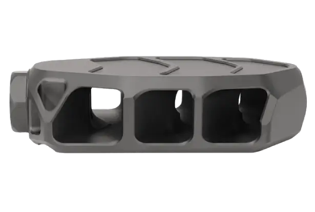– Gases exit sideways to reduce felt recoil and improve rifle control.